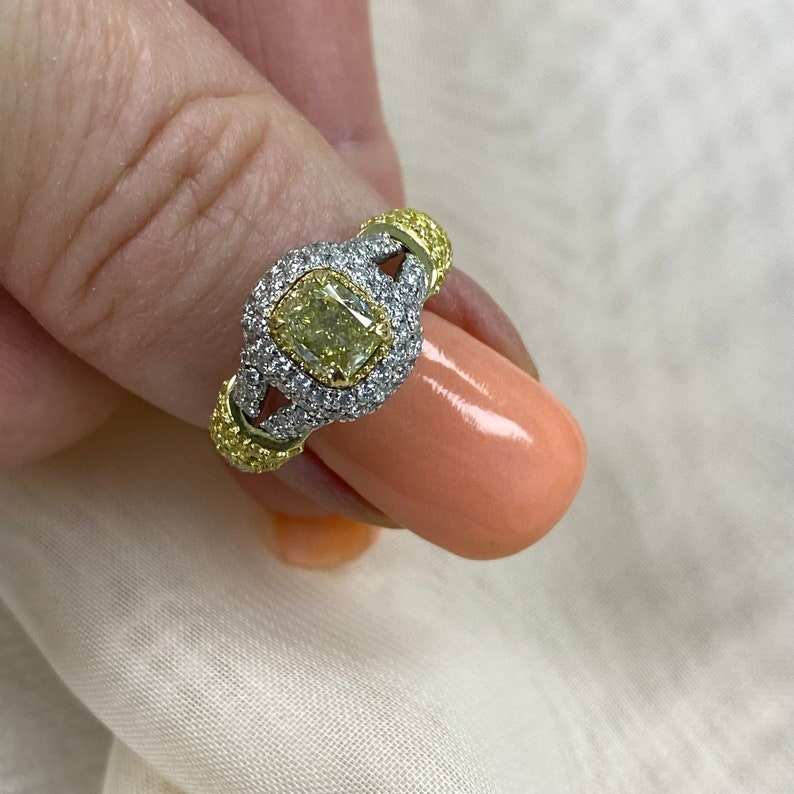 Double Halo Original Moissanite Yellow Cushion And Round Cut Diamond Ring 925 Sterling Silver Wedding Party Gift for Jewelry