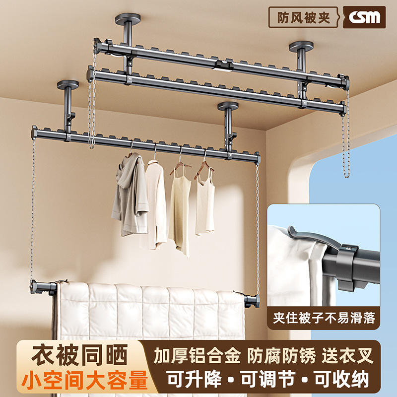 Double Layer Clothes Drying Rack Space Aluminum Adjustable Foldable With Blanket Clips For Balcony Home Use