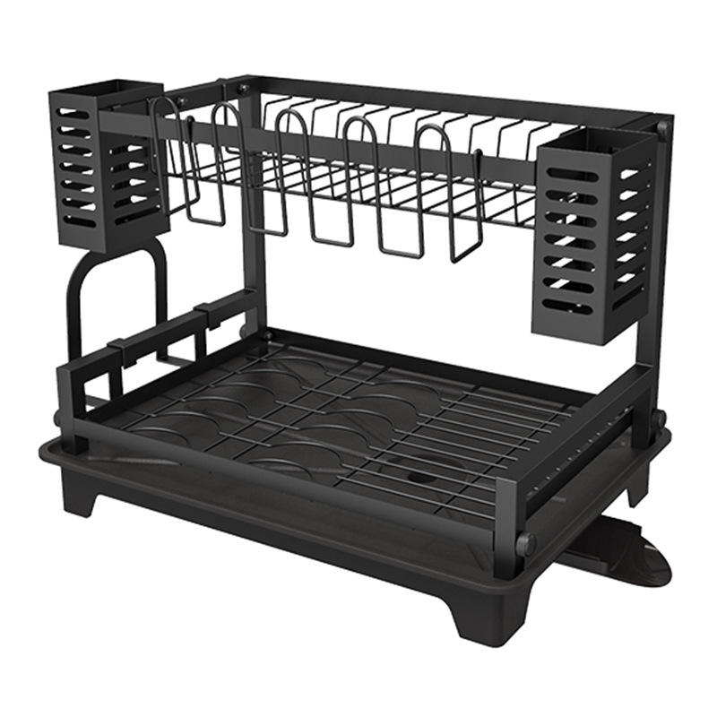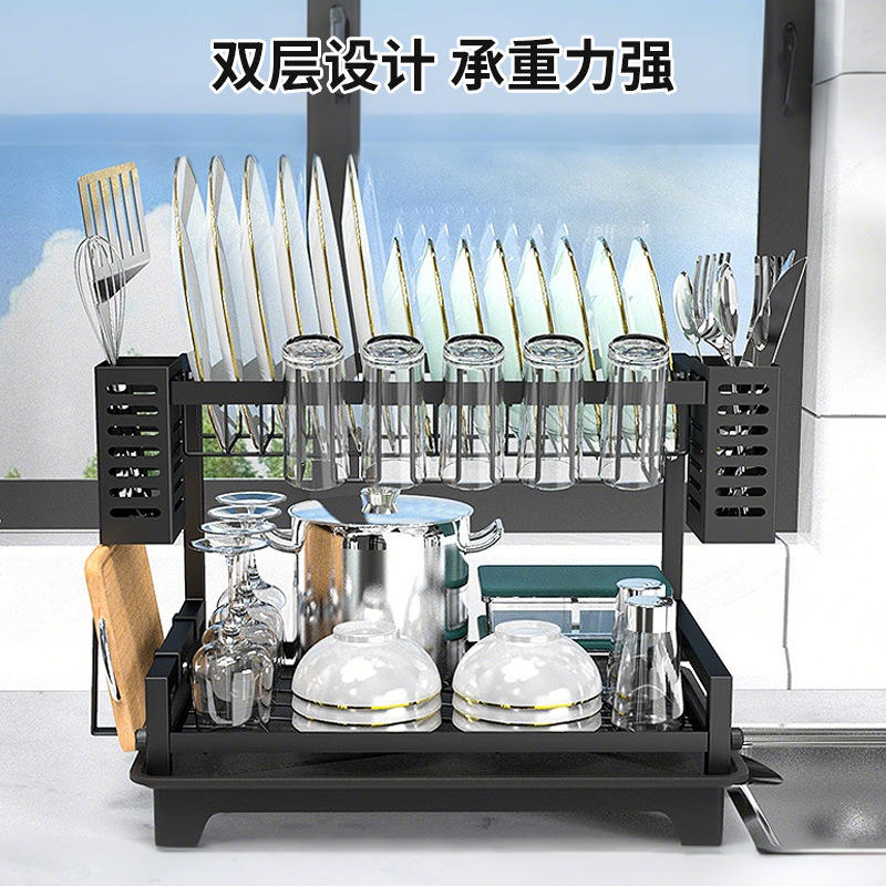 Double Layer Kitchen Dish Rack With Tray Quick Dry Countertop Dish Drainer For Sink Storage