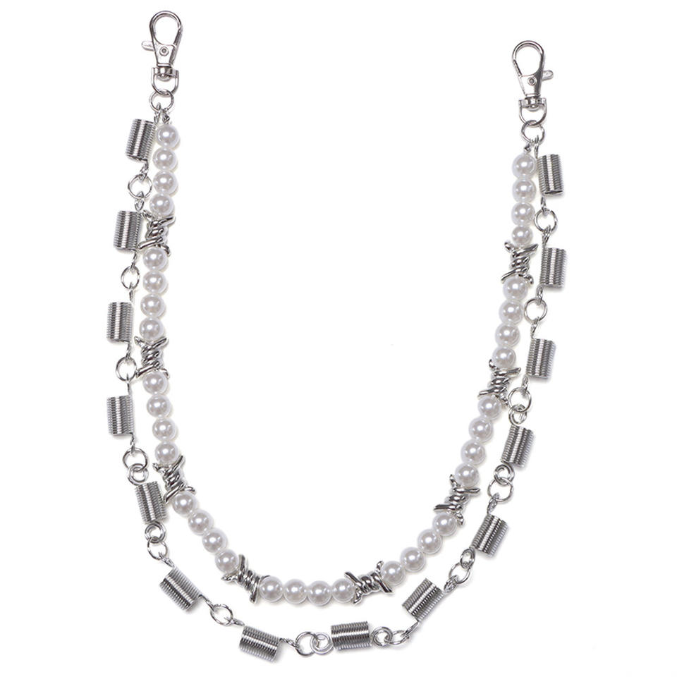 Double Layer Pearl Metal Spring Chain Waist Chain For Denim Hip Hop Fashion Adult Stainless Steel White K222 8131