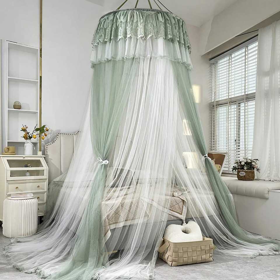 Double Layer Princess Round Dome Canopy Bed Curtains for Girls and Adults