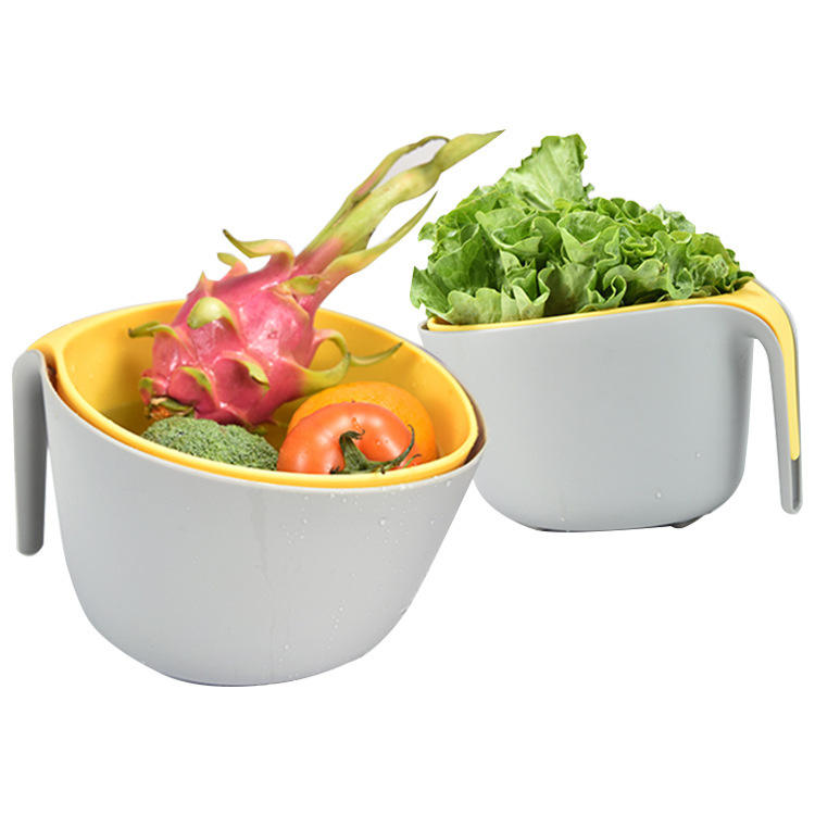 Double Layer Vegetable Fruit Drain Basket Plastic Washing Basin With Handle Kitchen Salad Mixing Bowl 3 Pieces Dishwasher Safe