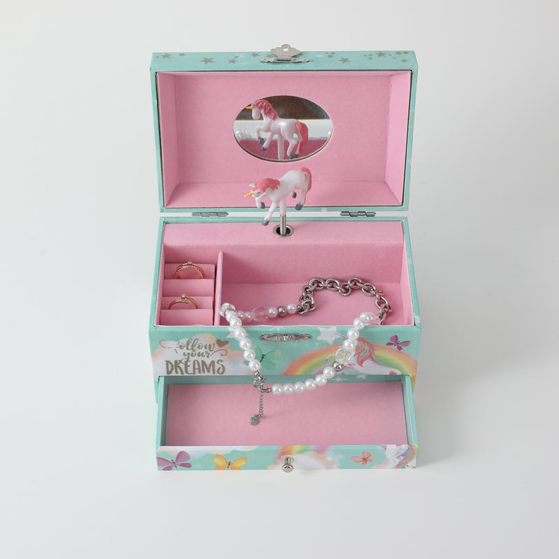 Double Layered Design Calming Fairy Tale Unicorn Music Jewelry Box, Sweet Dreamy Musical Storage for Kids Adults