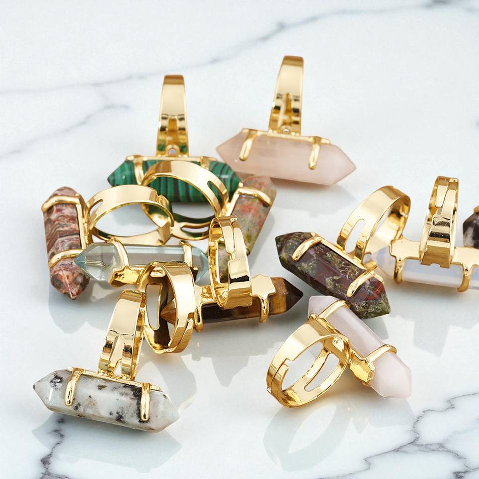 Double Pointed Healing Blue Sodalite Gemstone Rings- Long Stone Gold Plated Women Ring - 925 Silver Crystal Ring Jewelry