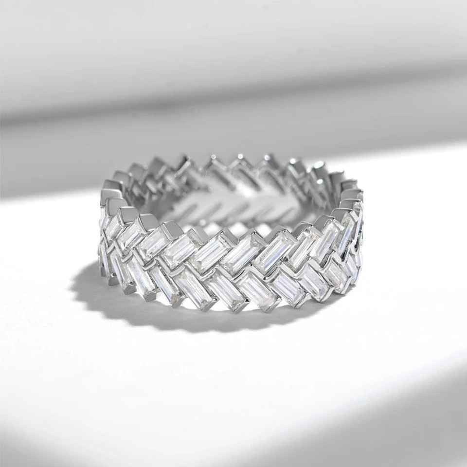 Double Row Baguette Cut VVS Moissanite Diamond Eternity Wedding Band 14k White Gold Fashionable Ring Jewelry