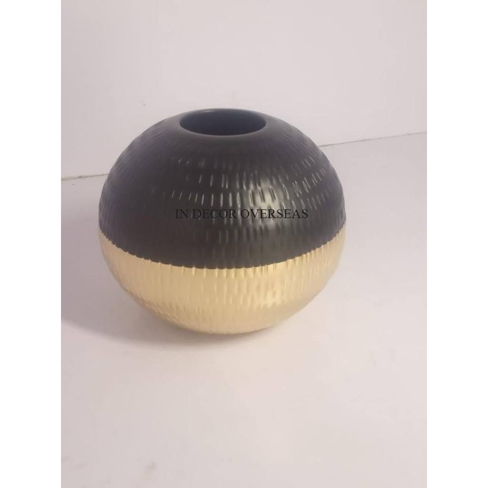 Double Shaded High Grade Gold Plated & Black Color Powder Coated Unique Fancy Design Texture Round Shape Metal Set Of 4 Planter
