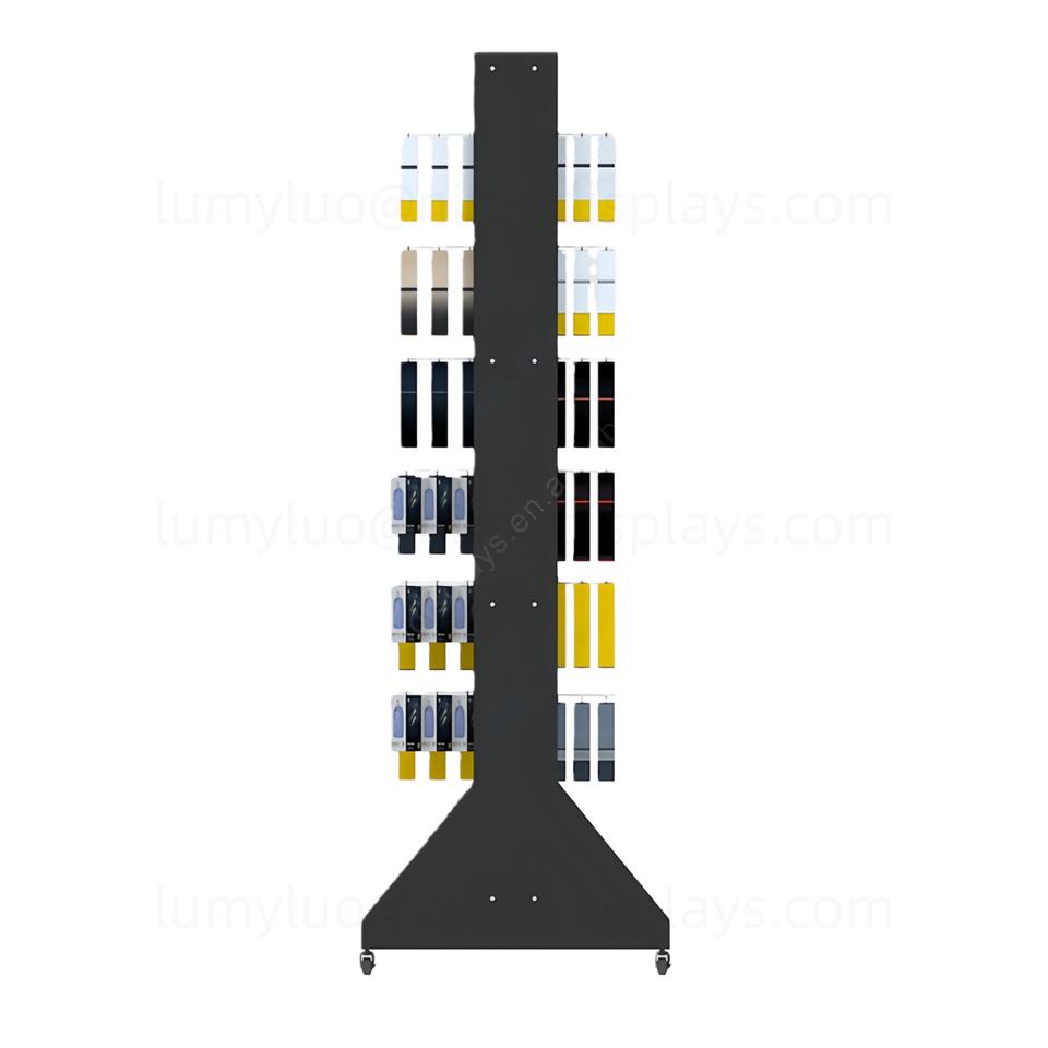 Double Side Mobile Phone Accessories Hanger Metal Floor Display Racks with Hooks & Wheels Rolling Storage for Retail Stores