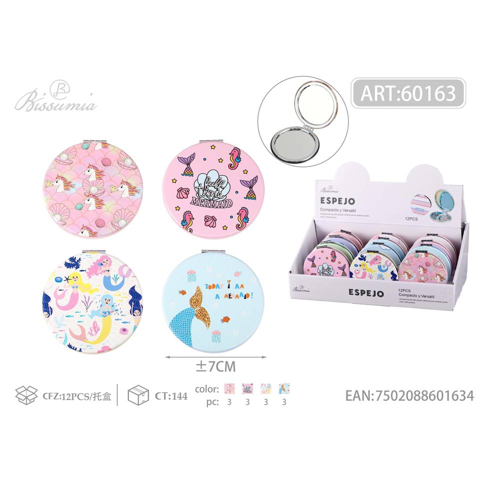 Double-Sided 7*7 Unicorn Round Compact LED Makeup Mirror 2x Magnification Foldable Customizable Logo Hand Cosmetic Mirror