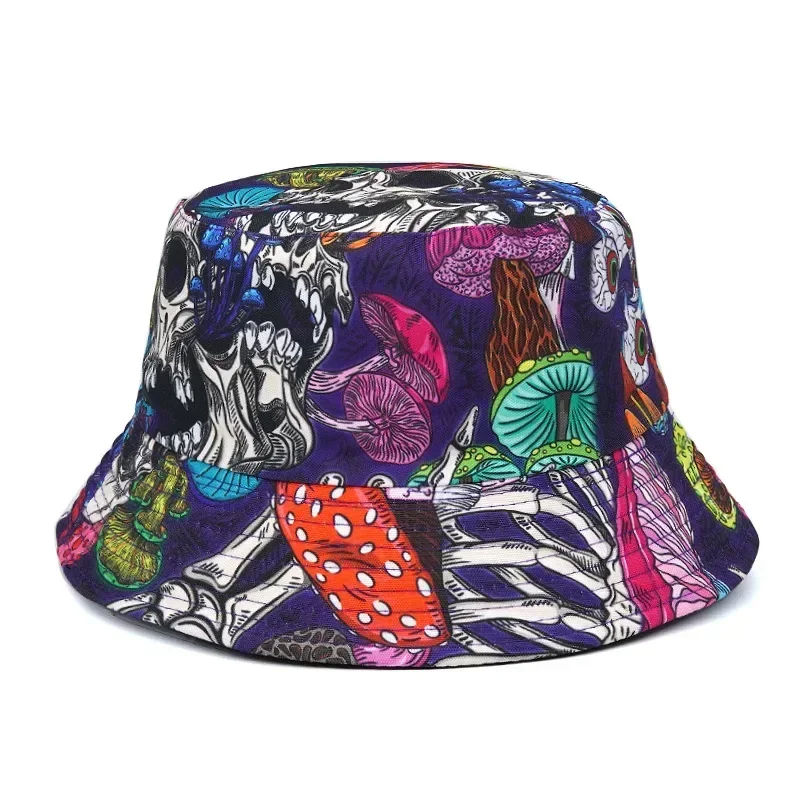 Double-Sided Summer Bucket Hat for Men and Women Printed Panama Cap in Hip Hop Style for Sun Protection Fishing Fashion Wear