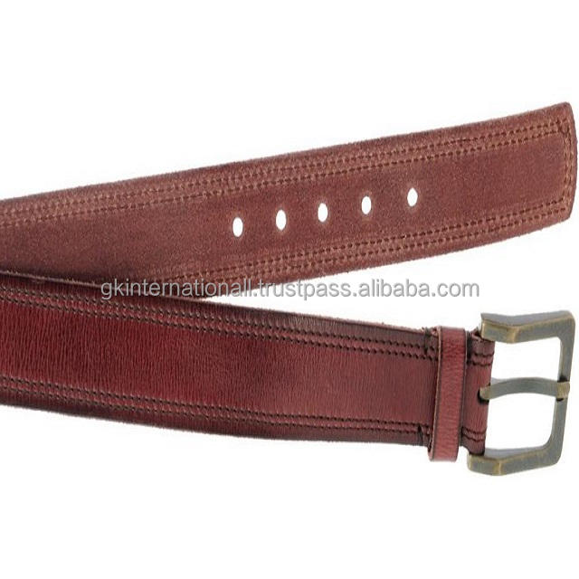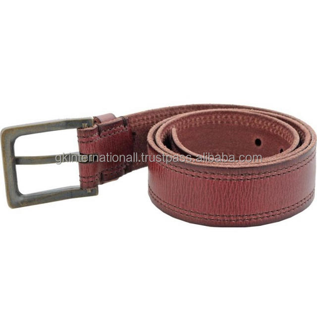 Double Stitched Handmade Brown Textured Leather Casual Belt for Men Made in India Men's Fashion Leather Belts and Accessories