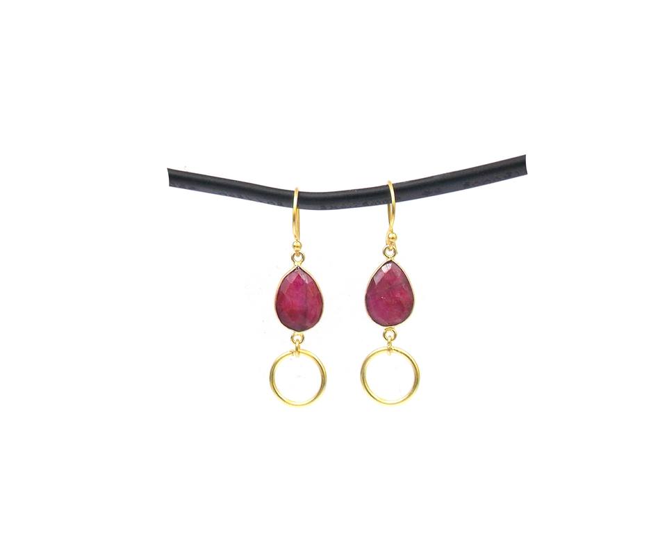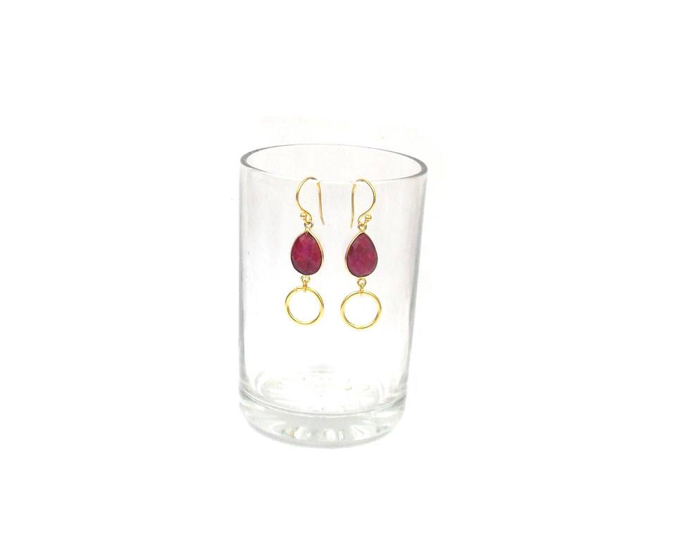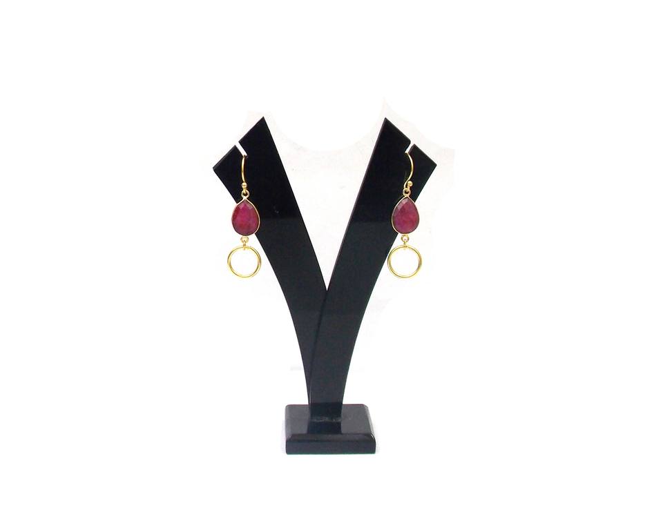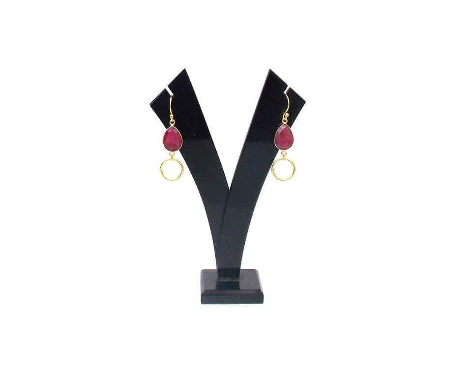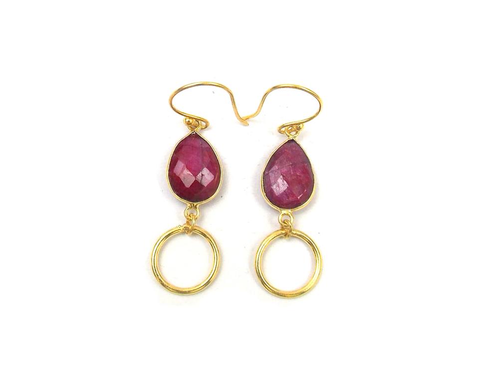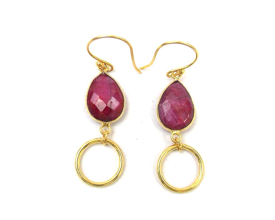 Double Stone Birthstone Classic Boho Earrings Dyed Ruby Pear Shape Gold Plated Sterling Silver Hoop Set Party Fashion Gift