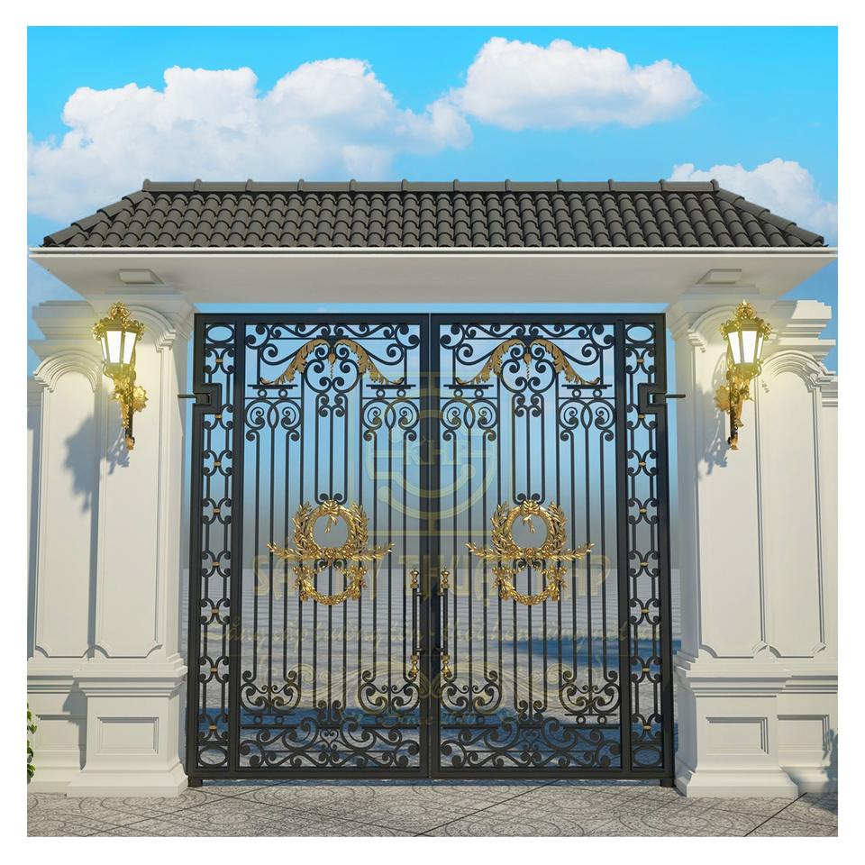 Double Swing Driveway Gate Professional Design Modern Classic Luxury Wrought Iron Gates Villa Entrance Anti-Theft Galvanized ECO
