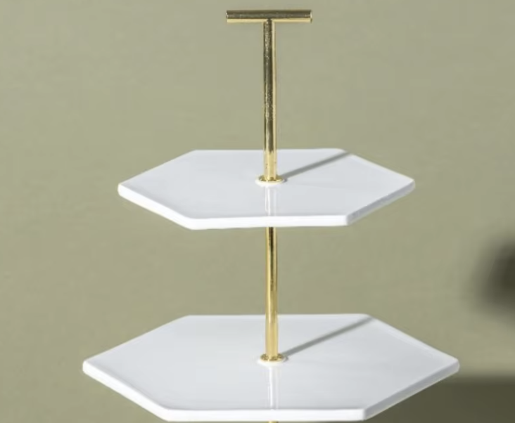 Double Tier Aluminium Food Grade Eco-Friendly Cake Stand Octagon Shape Customized Dessert Serving Stand Opp Bag Low Price