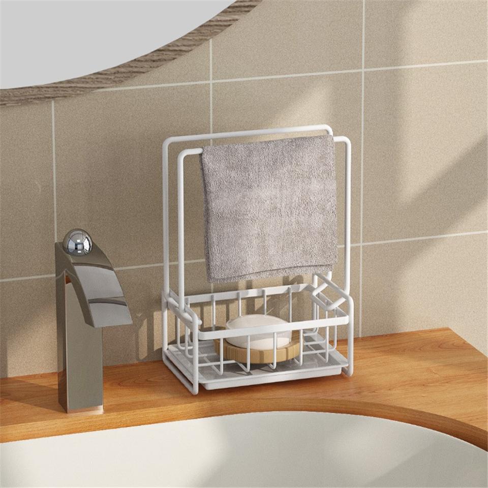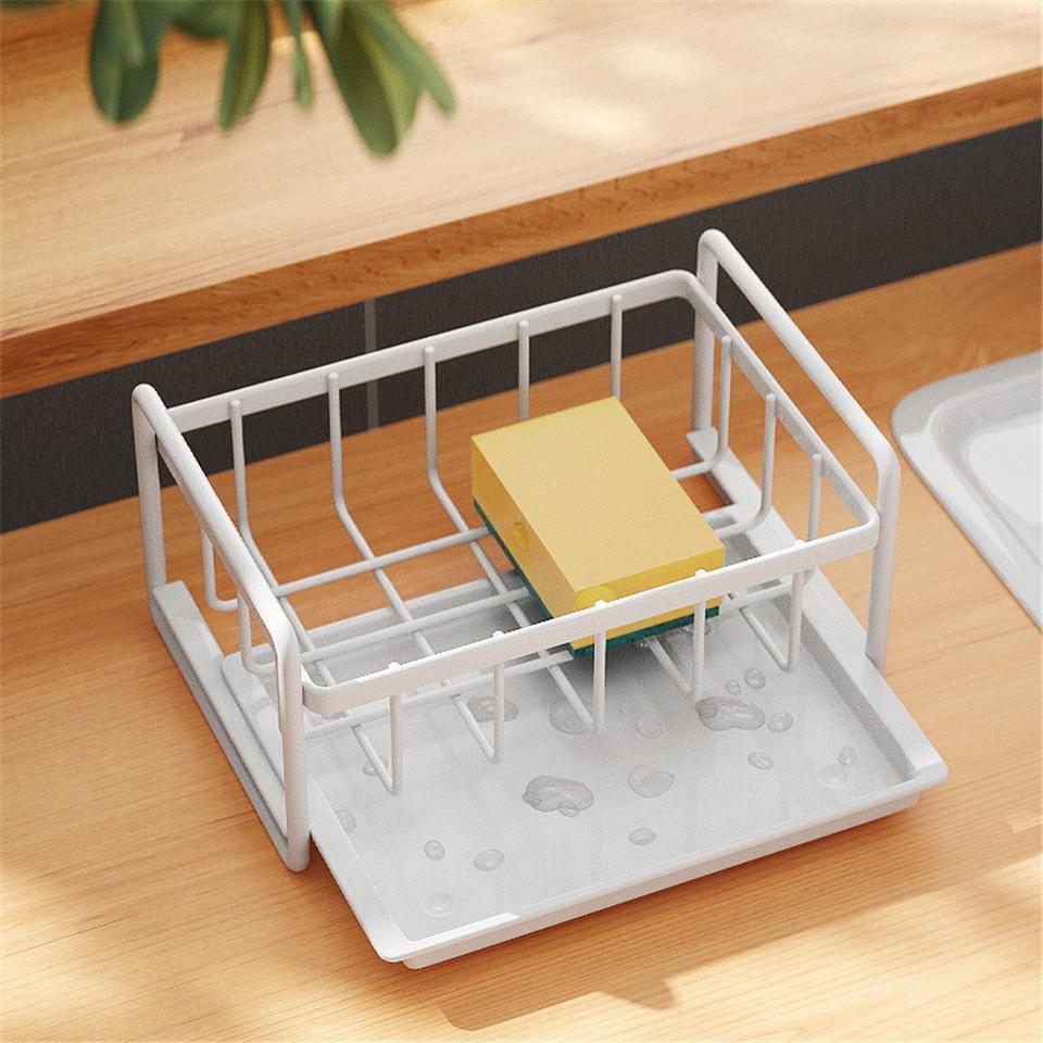 Double-Tier Modern Kitchen Storage Racks Punch-Free Standing Towel Drain & Sponge Drain Racks Stainless Steel Waterproof