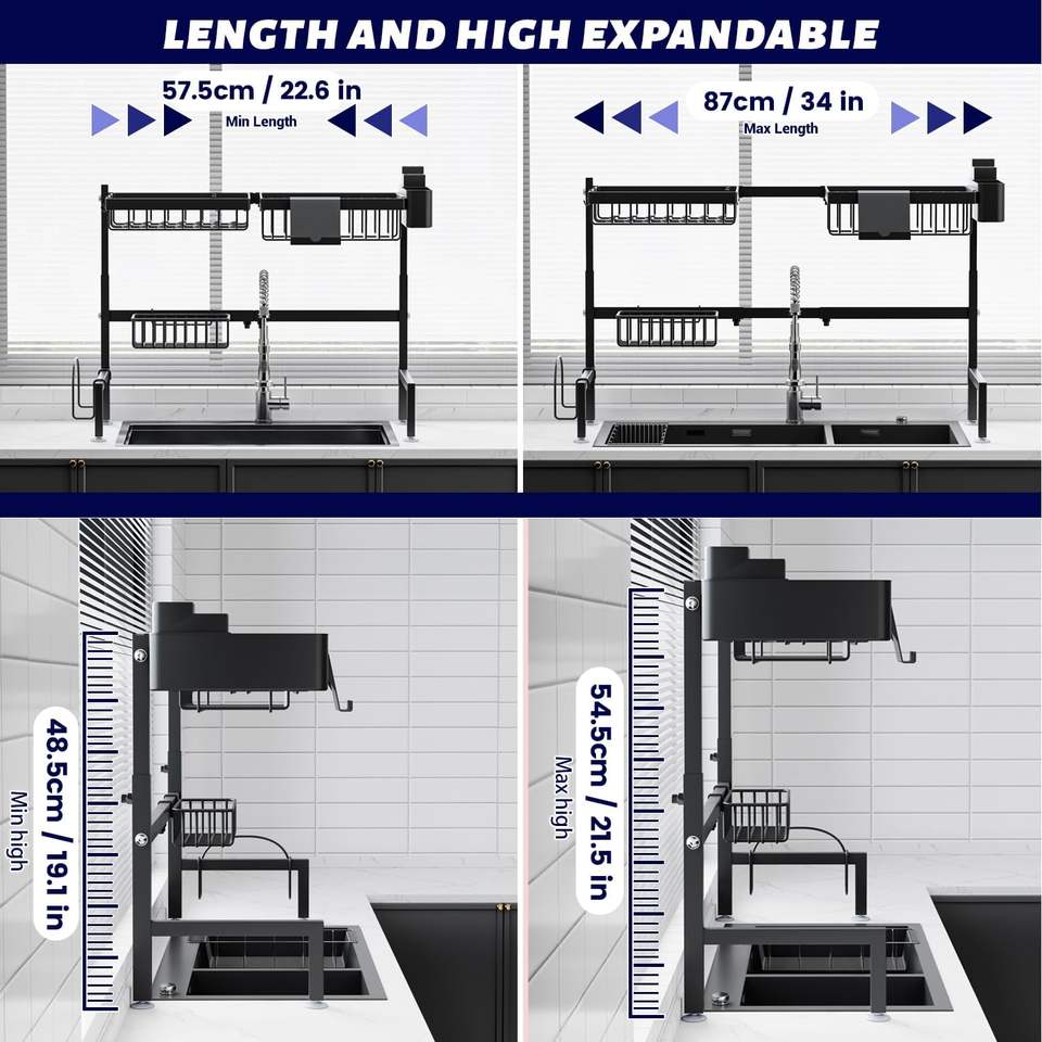 Double Tier Stainless Steel Multifunction Dish Drainer Over the Sink Dish Drying Storage Rack for Kitchen