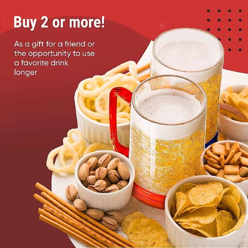 Double Wall Frozen Beer Mugs for Freezer with Handles 16oz Freezer Mugs for Beer