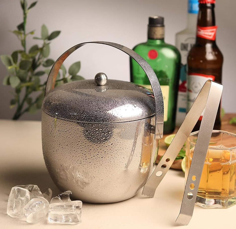 Double Wall Stainless Steel Ice Bucket with Tong Mirror Finish | Leak Proof Luxury Bar & Party Ice Box | Factory Price