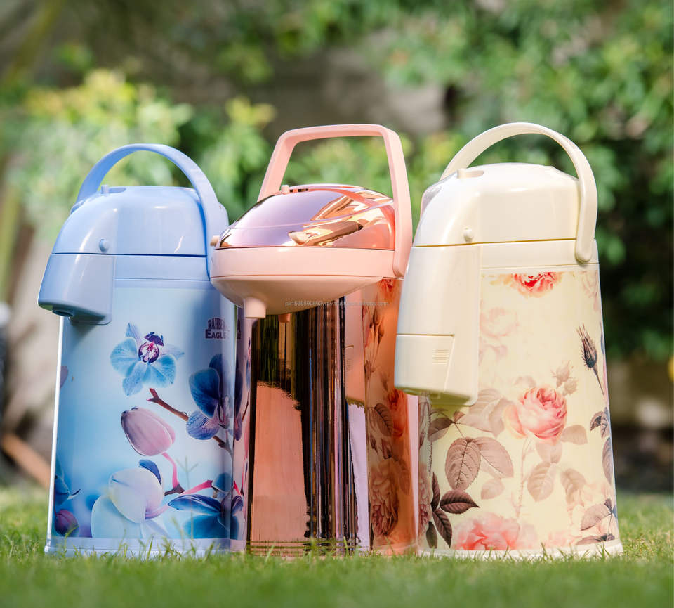 Double Wall Stainless Steel Vacuum Flasks: Family Button Vacuum Flask Coffee Thermos, 1L Capacity, Shine Airport Pumper