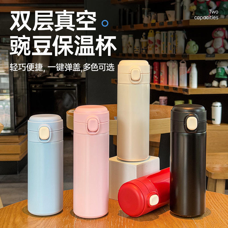 Double Wall Vacuum Insulated Water Bottle For Women Students Large Capacity Pop Up Lid Stainless Steel Tumbler