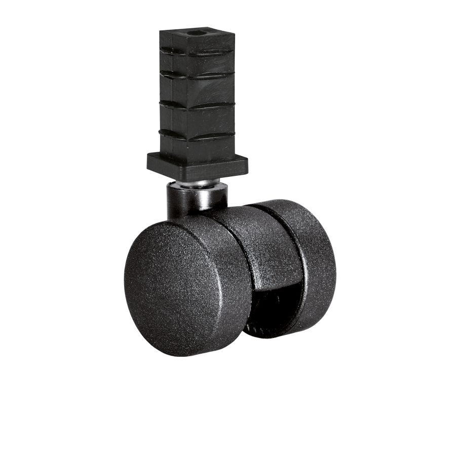 Double Wheel Ø 35 mm Furniture Casters with Hard Running Surface Clamping Ring Pin Ø 8x58 mm Square Tube Sleeve 30x30x1.5 mm