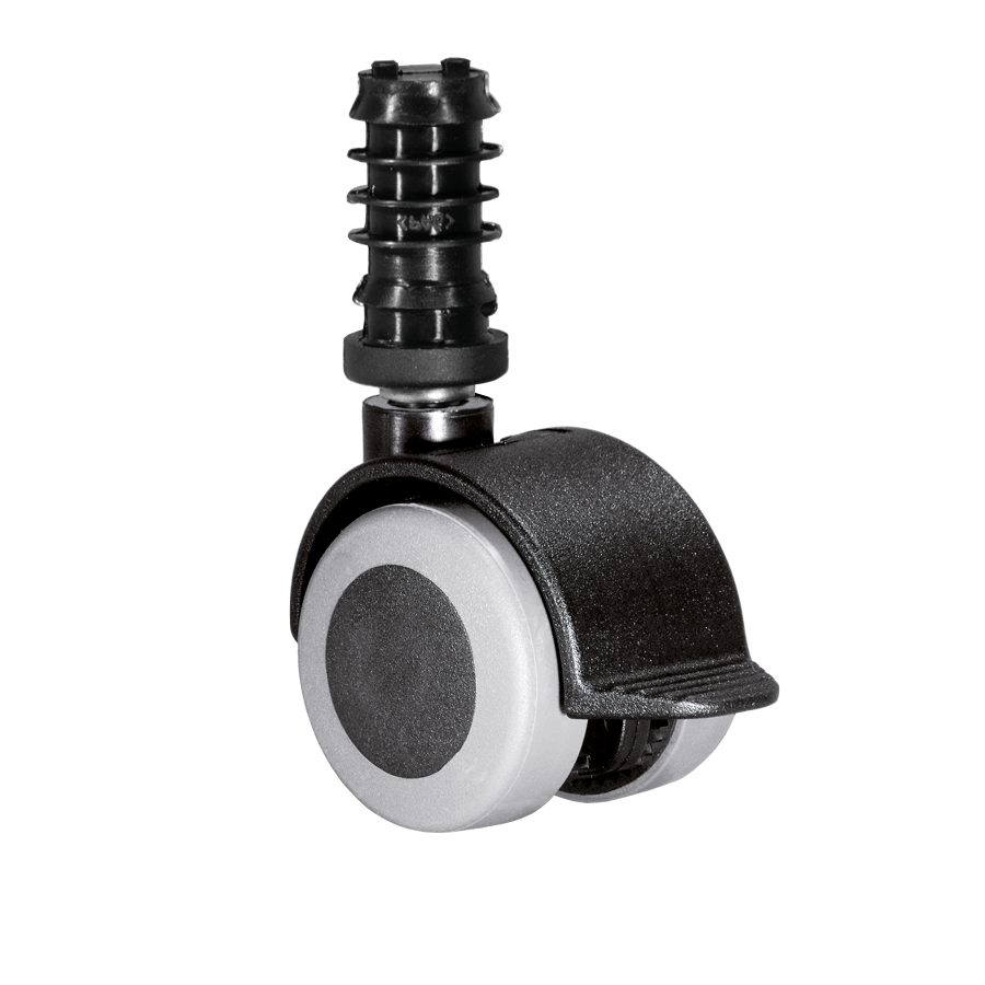 Double Wheel Furniture Casters Ø 40 mm with Soft Running Gray Surface Brake Clamp Ring Pin Ø 8x58 mm Mounting Sleeve Ø 10x37 mm