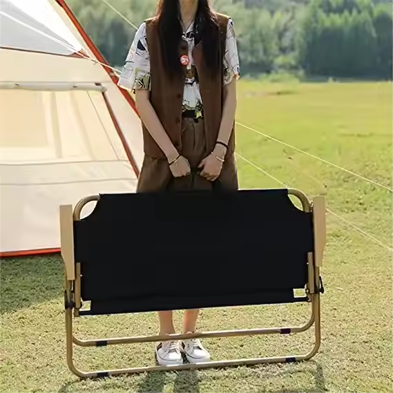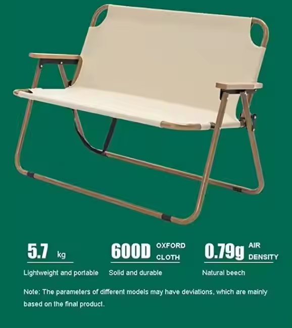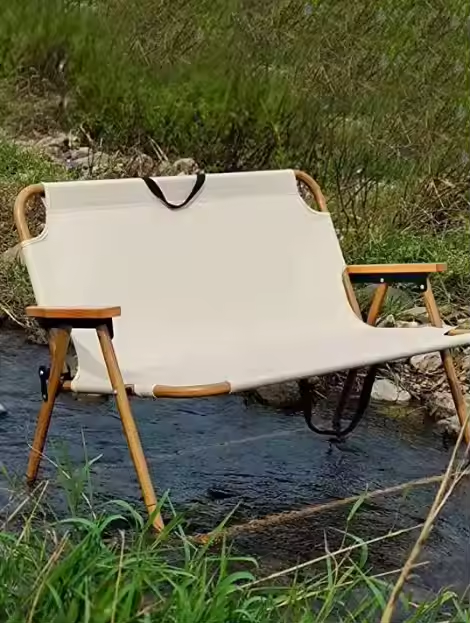 Double Wood Armchair Double Backrest Folding Camping Chair Thickened Steels Beach Chair for Travel Chair Outdoor Camping