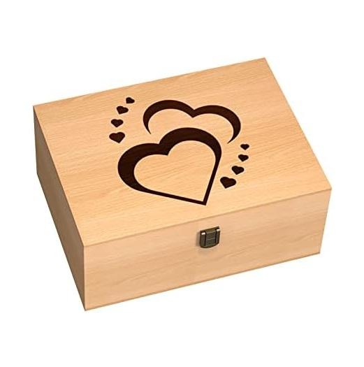 Double love Heart Wooden Keepsake Box, Engraved Design Decorative Memory Wooden Boxes with Hinged Lid and Lock