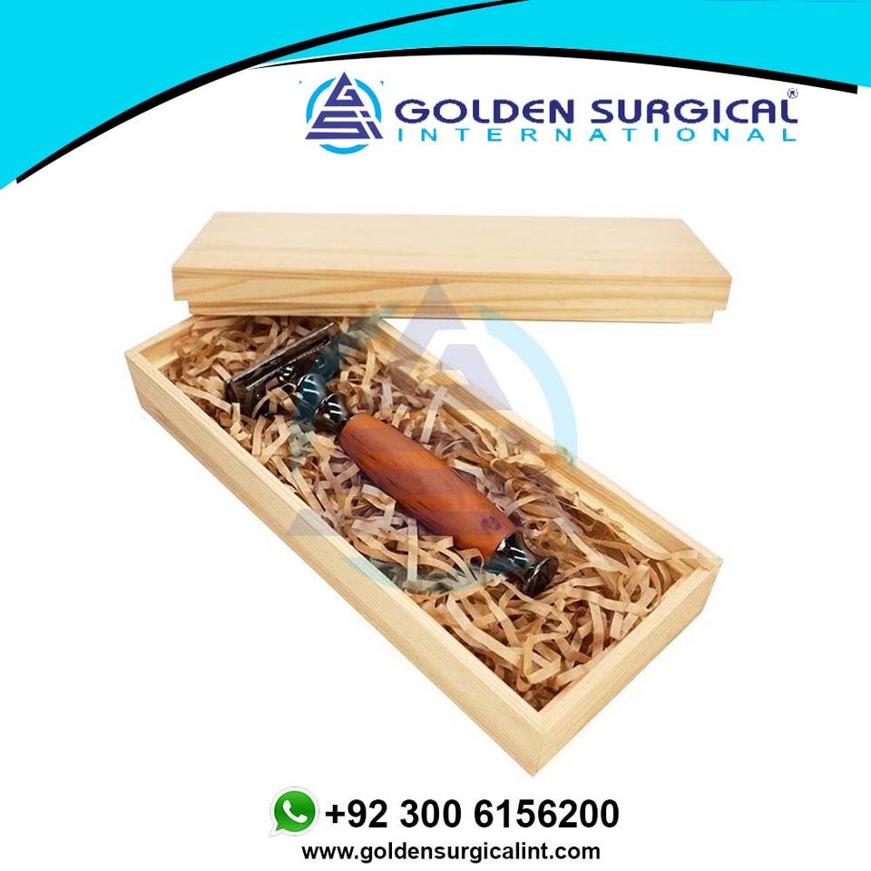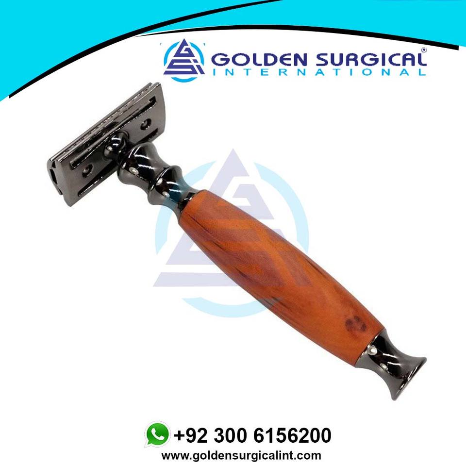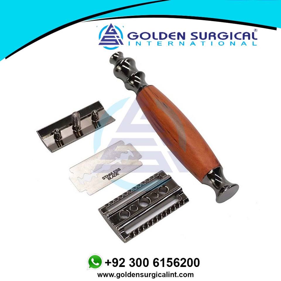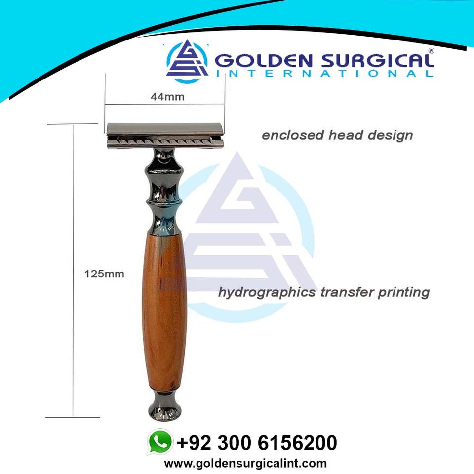 Double-sided Razor with Knife Holder Peach Wood Grain Aluminum Handle Manual Shaver Old-fashioned