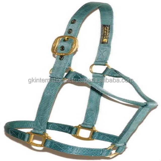 Double Stitched Turquoise Nylon Horse Halter in Many Colors & Custom Sizes with High Finish Brass Buckle & Ring at Factory Price