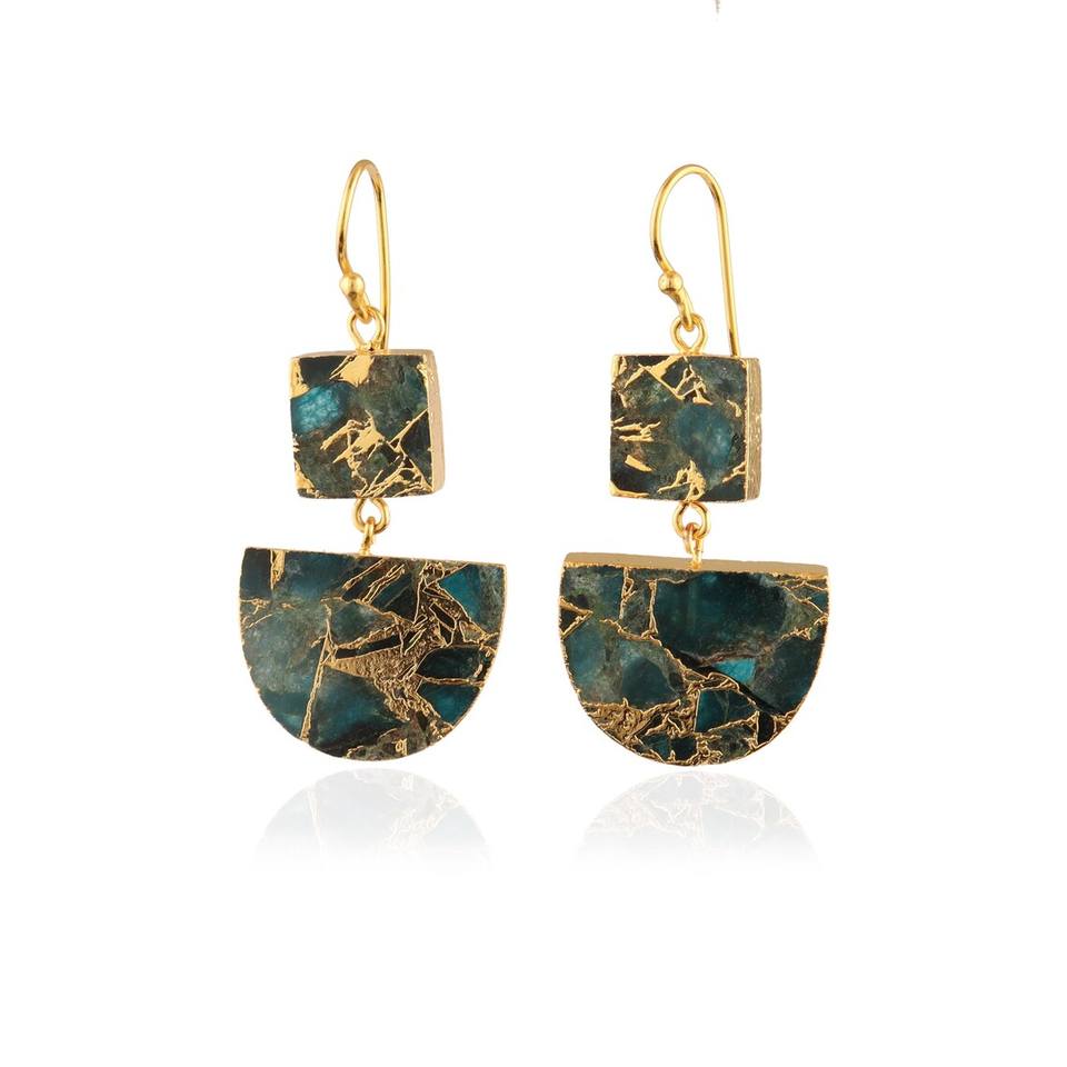 Double stone copper turquoise jewelry mohave apatite copper turquoise dangle earring 18k gold electroplated geometric earrings