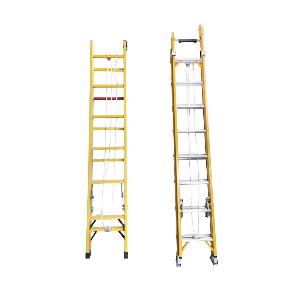Double-telescopic fiberglass reinforced plastic (FRP)fiber extension ladder, withstrong insulationand highload-bearingcapacity.