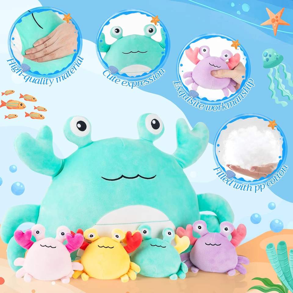 DoubleFill 5-Piece Crab Plush Toys Set 14 Inch Large Crab Stuffed Animal Pillow 4 Baby Plushies for Birthday Party Decorations