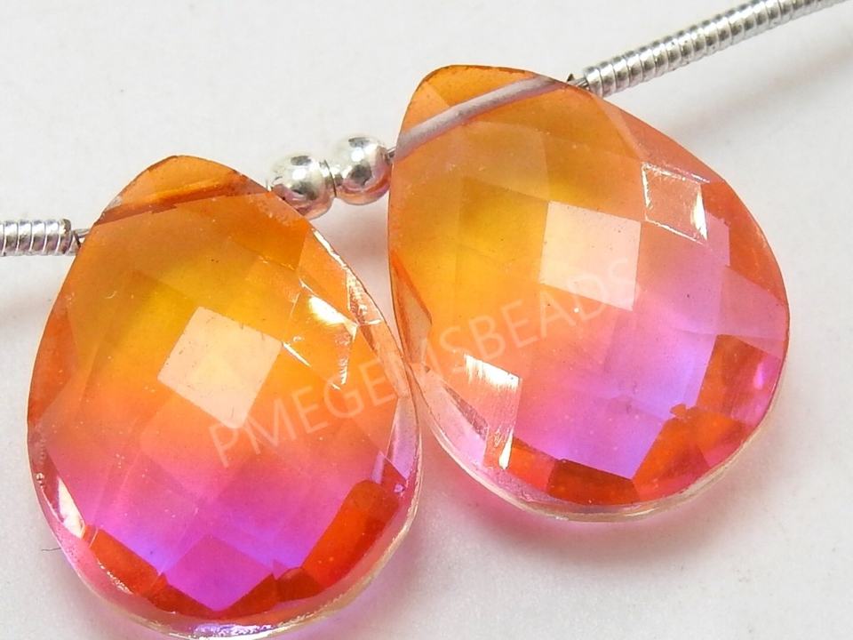 Handmade Premium Bio Color Teardrop Quartz Faceted Beads Doublet Bio Crystal Heart Pattern Nature Inspired Loose Crystal Jewelry