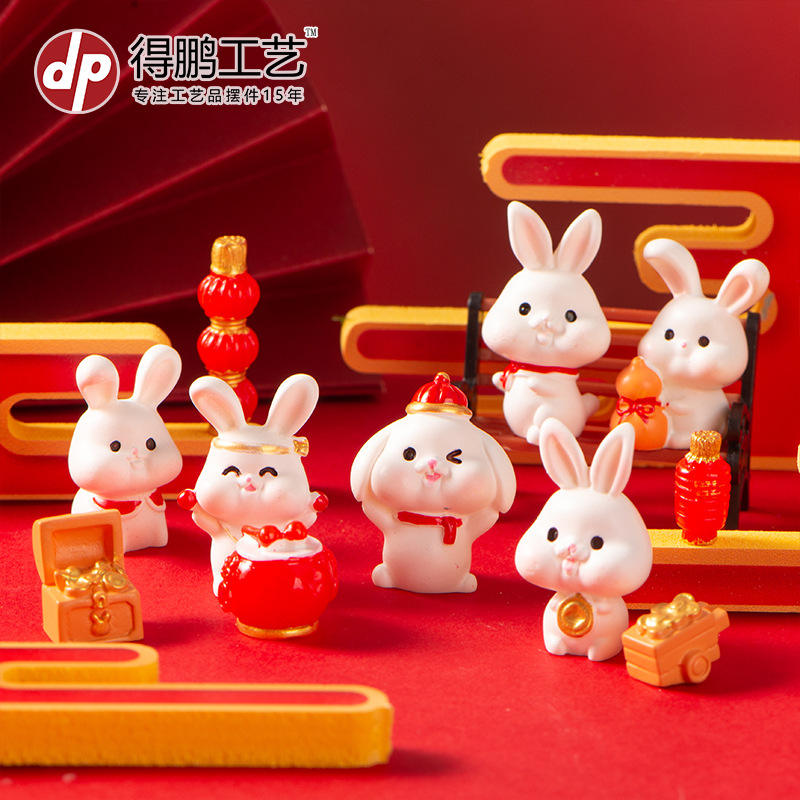 Dp Miniature Rabbit Resin Ornament Chinese New Year Indoor Decor Handmade Craft Gift