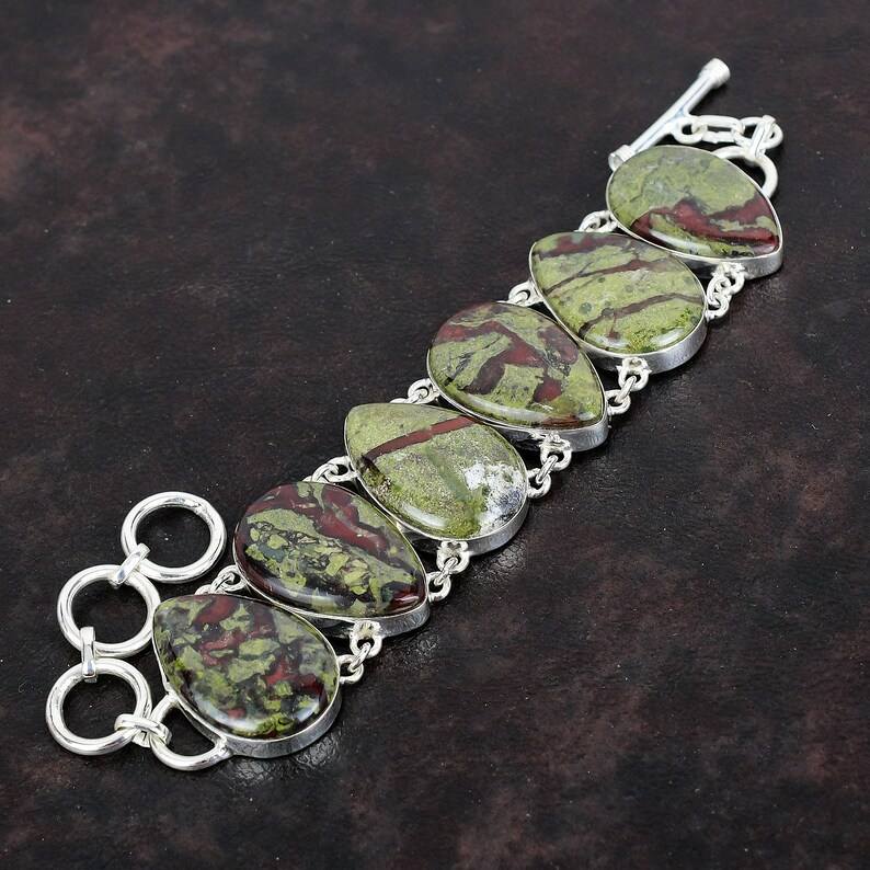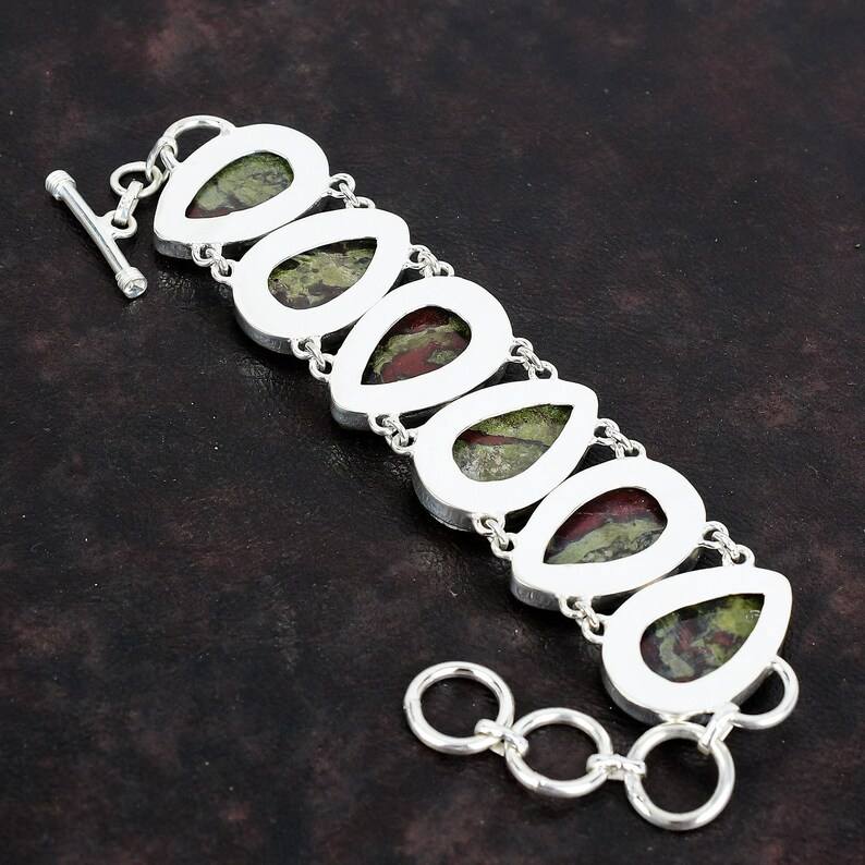Dragon Bloodstone Sterling Silver Bracelet Handmade Gemstone Jewelry Natural Red Green Healing Stone For Women