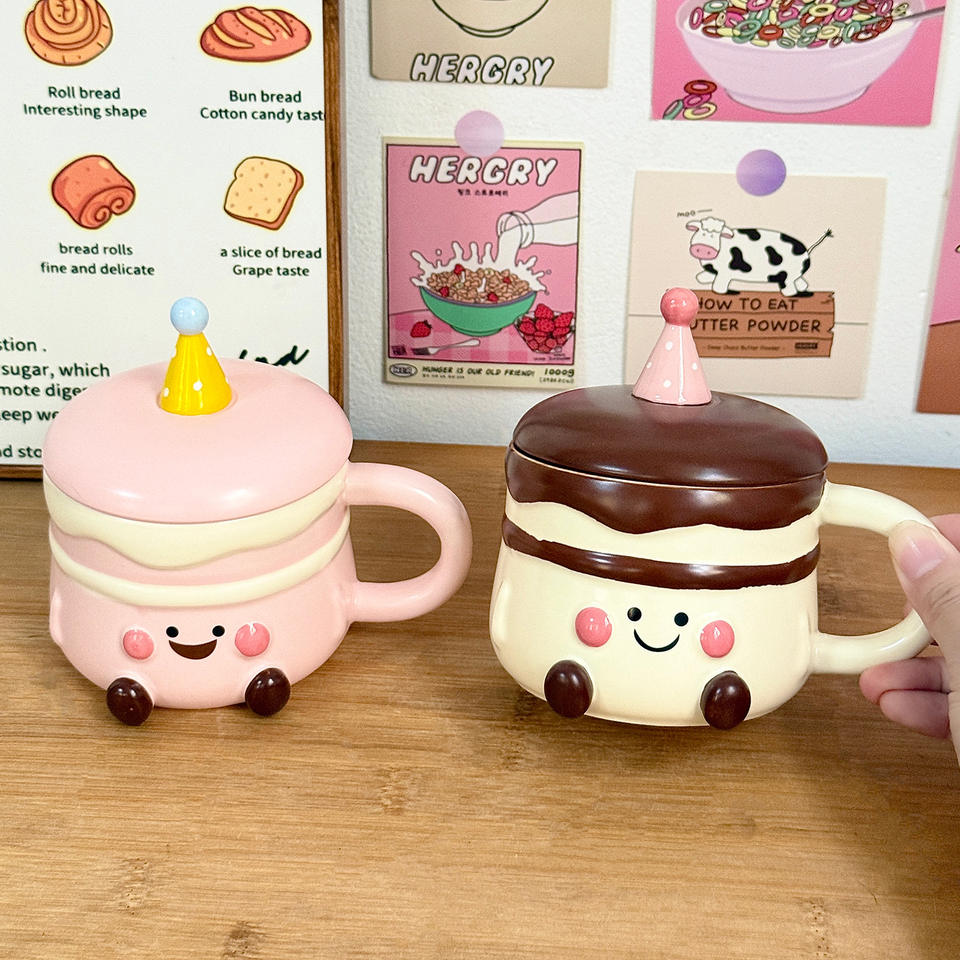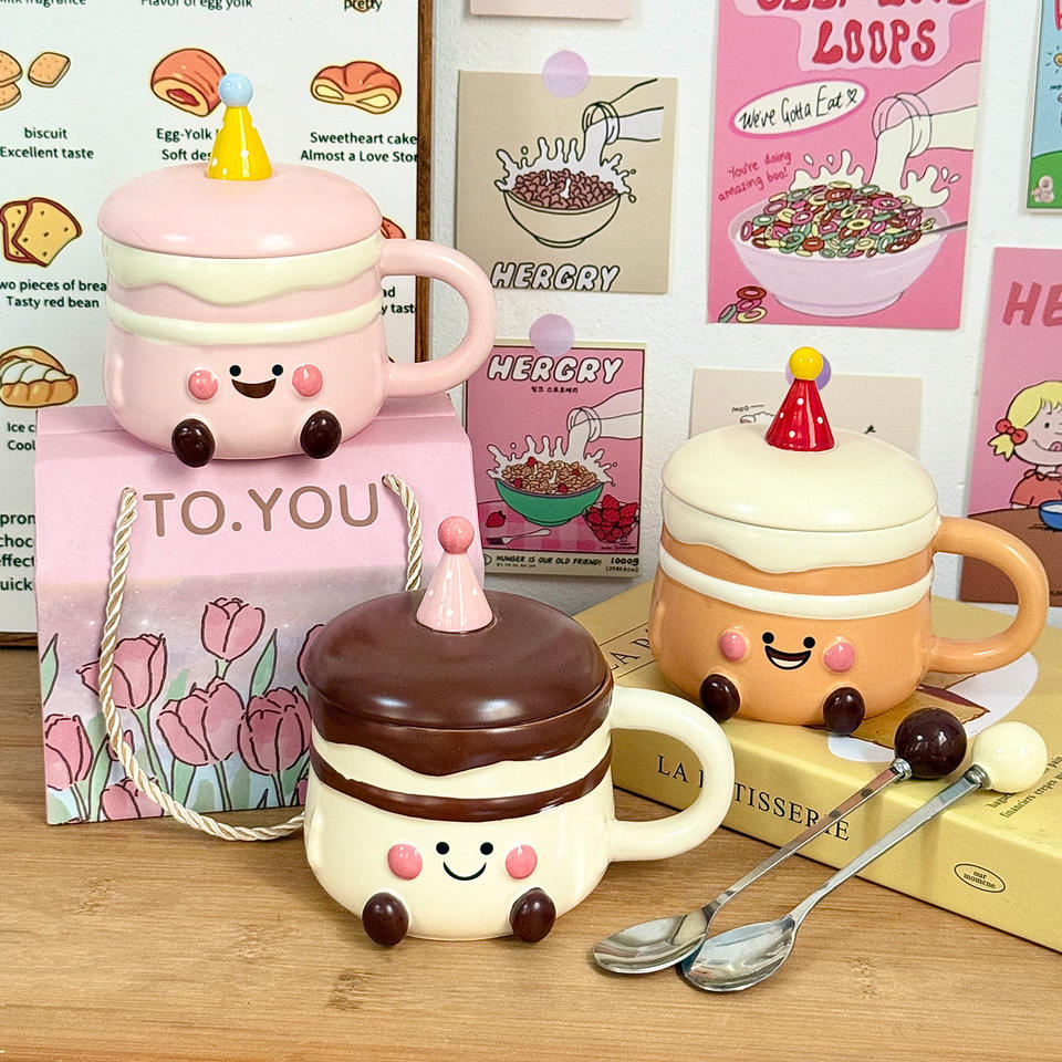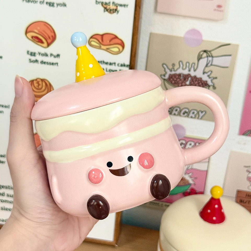 Dragon Nest Birthday Cake Mug With Lid 301-400ml Ceramic Cup For Girls Presents Reusable Coffee Mug