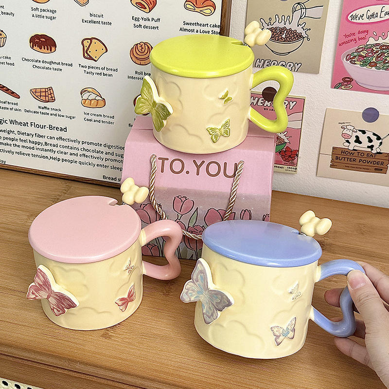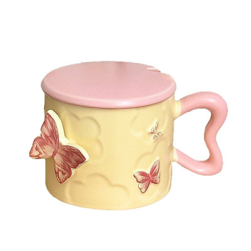 Dragon Nest Butterfly Ceramic Mug With Lid And Spoon 301-400ml Heat Resistant Cup For Girls Gift Present