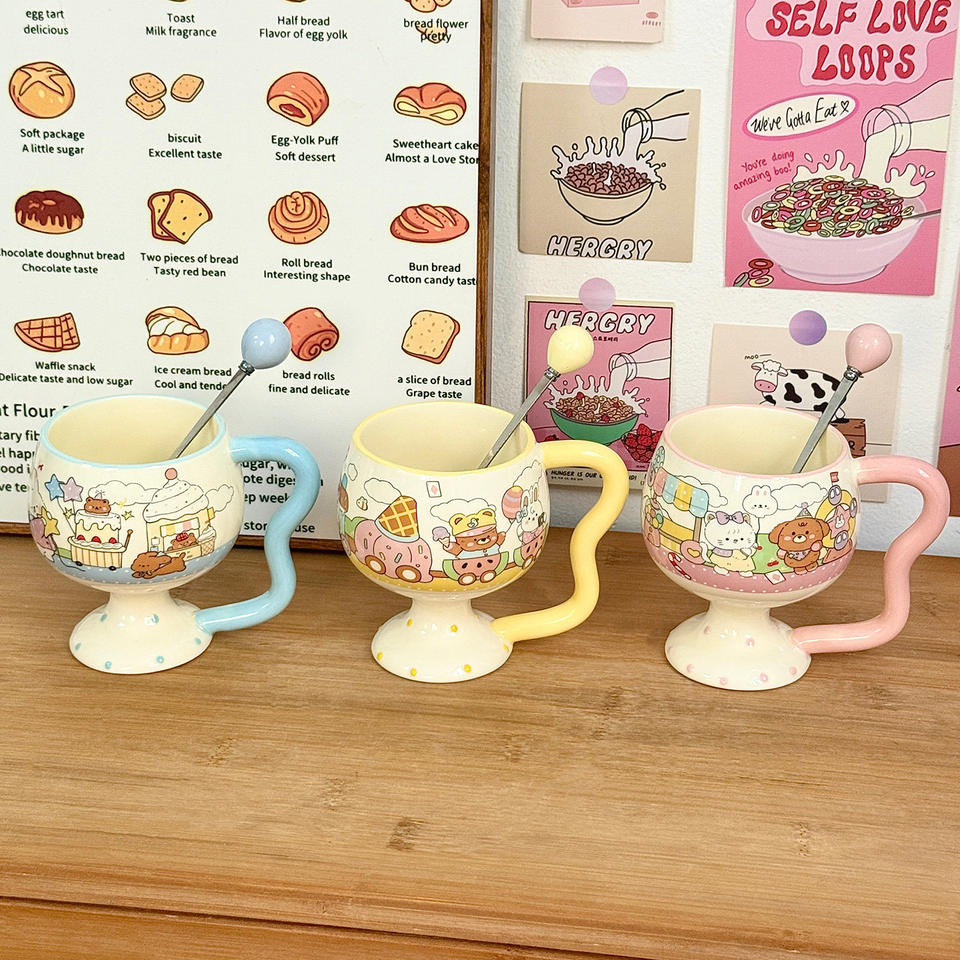 Dragon Nest Ceramic Mug 301-400ml With Spoon Heat Resistant Cute Cartoon Design For Girls Home Use Gift