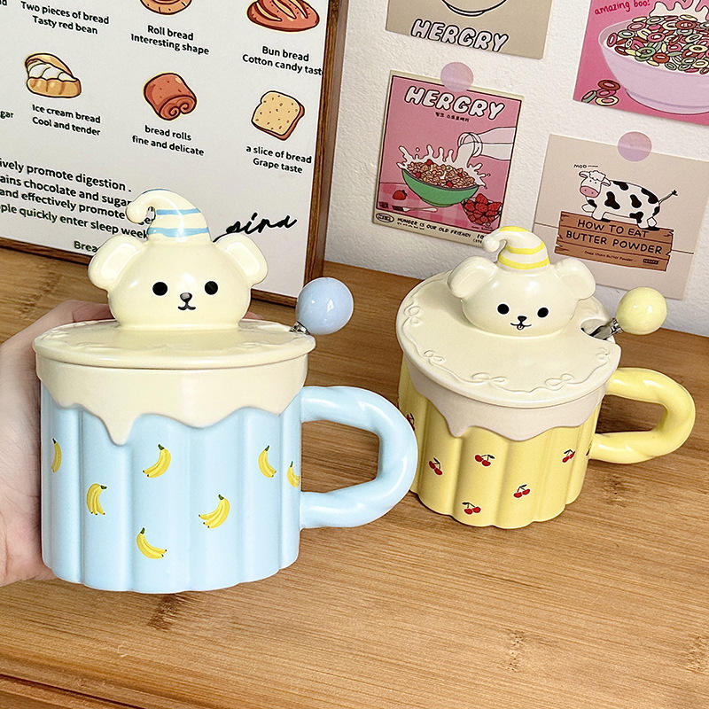Dragon Nest Ceramic Mug 301-400ml With Lid Cute Dog Design Gift Cup For Girls Birthday Present