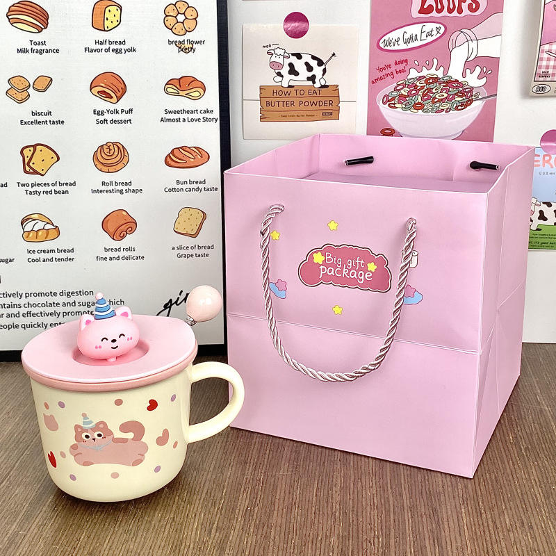 Dragon Nest Cute Puppy Mug 301-400ml With Lid Reusable Ceramic Cup Birthday Gift For Office Use