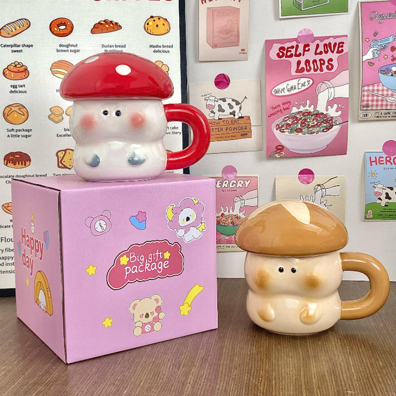 Dragon Nest Mushroom Ceramic Mug With Lid 401-500ml Large Capacity For Home Couples Gift