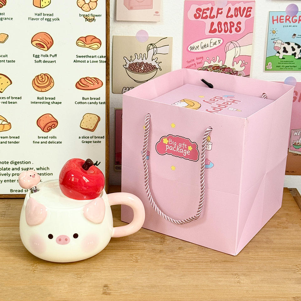 Dragon Nest Pig Ceramic Mug 401-500ml With Lid And Spoon For Girls Couple Coffee Cup Gift Present