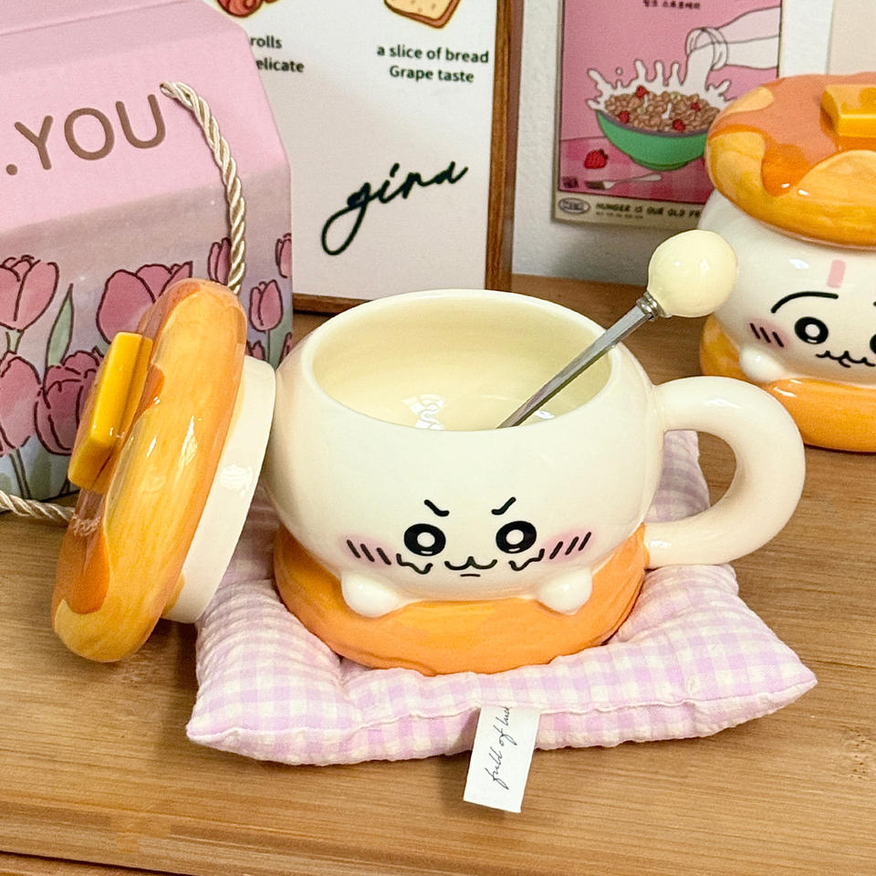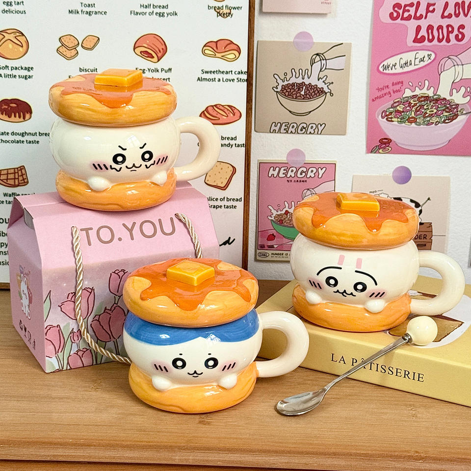Dragon Pavilion Ceramic Hamburger Mug With Lid 301-400ml Reusable Cup For Students Birthday Gift