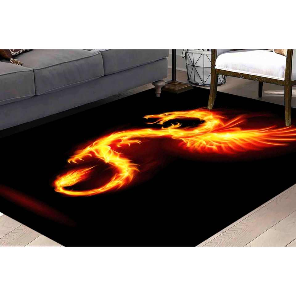 Dragon Silhouette Black Rug: Anti-Slip Home Decor,Nonwoven Soft Rug