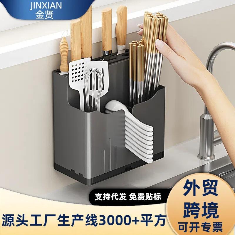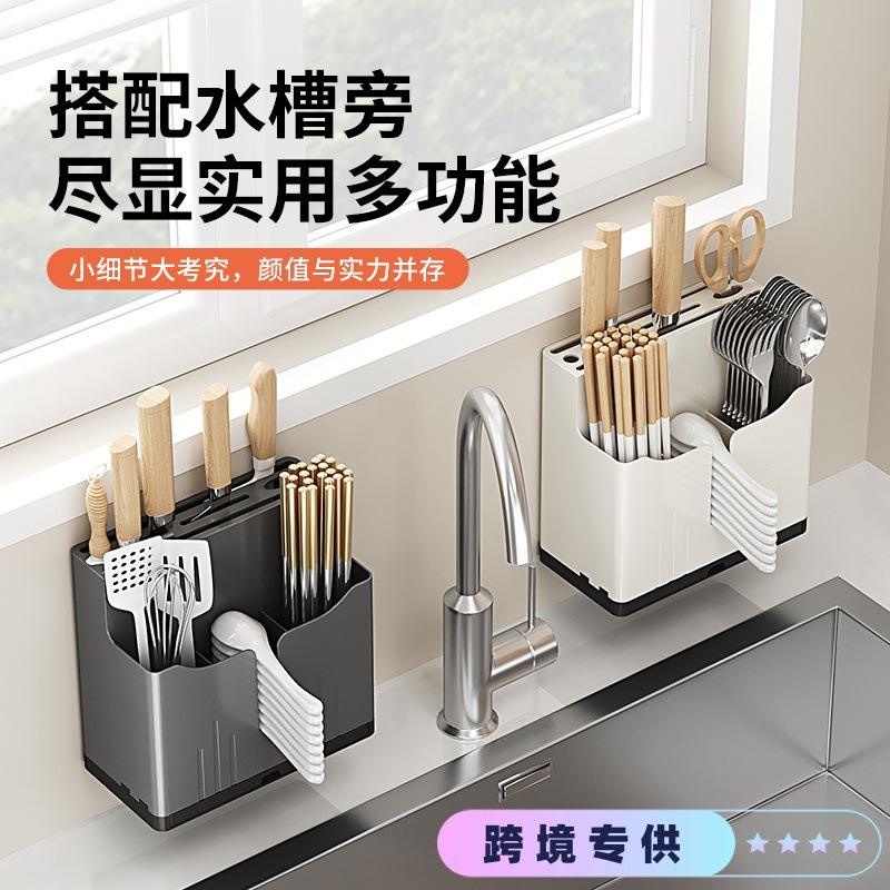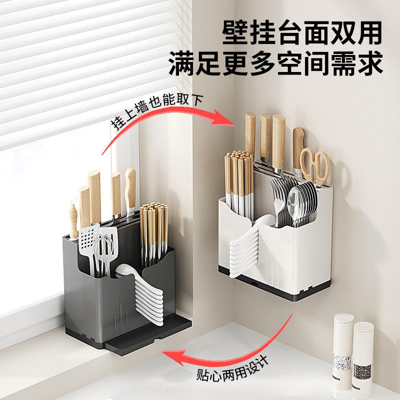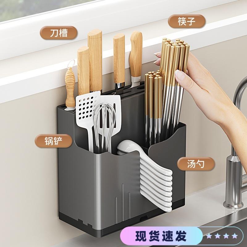 Draining Rack Wall Mounted Square Multi Purpose Knife Chopstick Spoon Storage Box Hanging Countertop Kitchen Organizer
