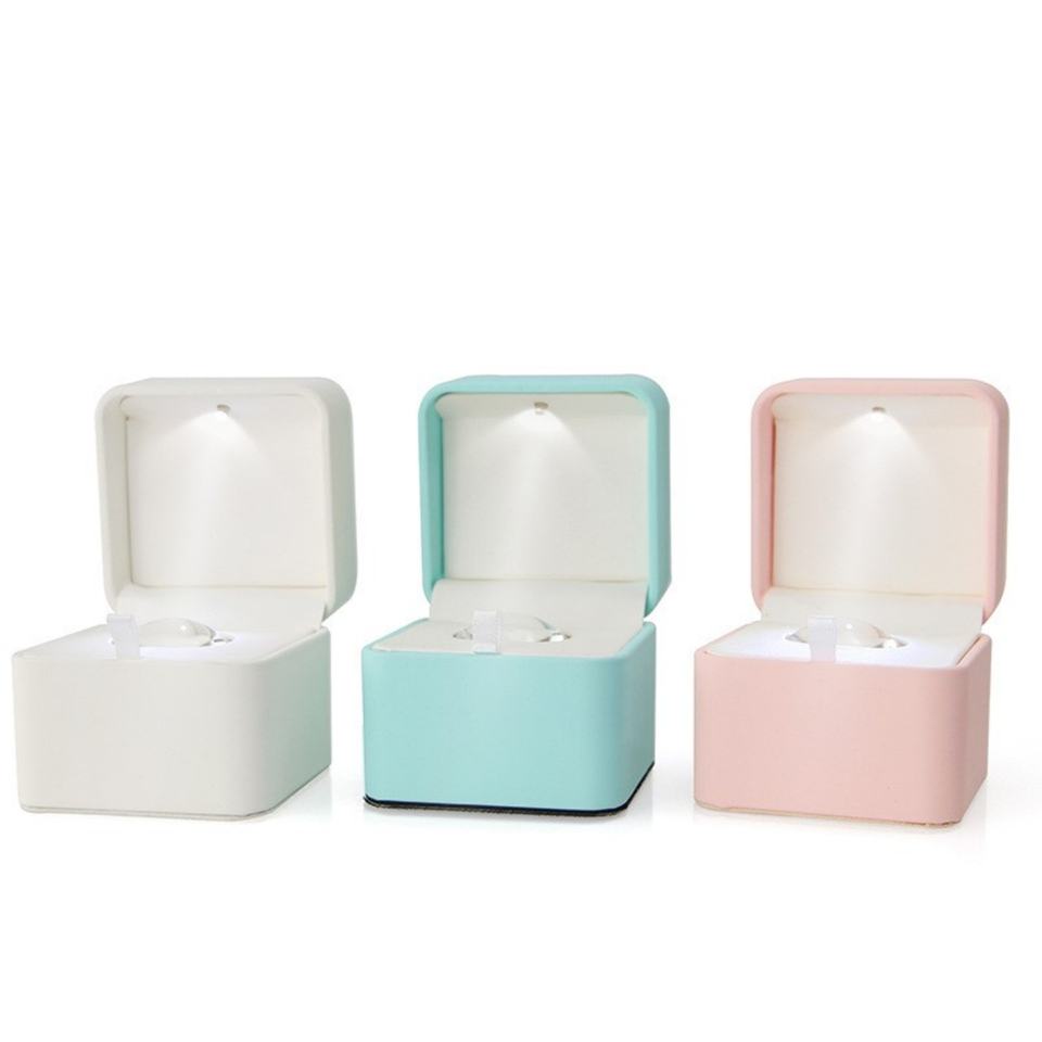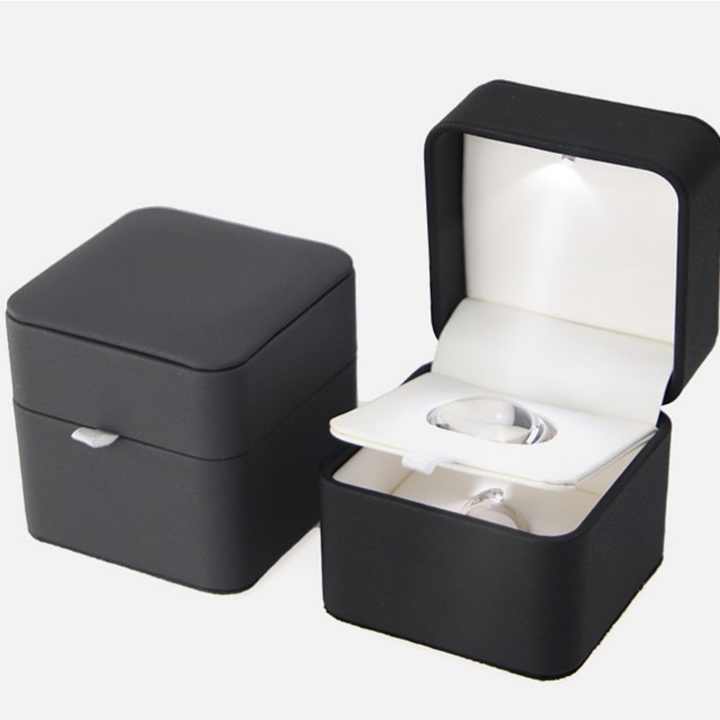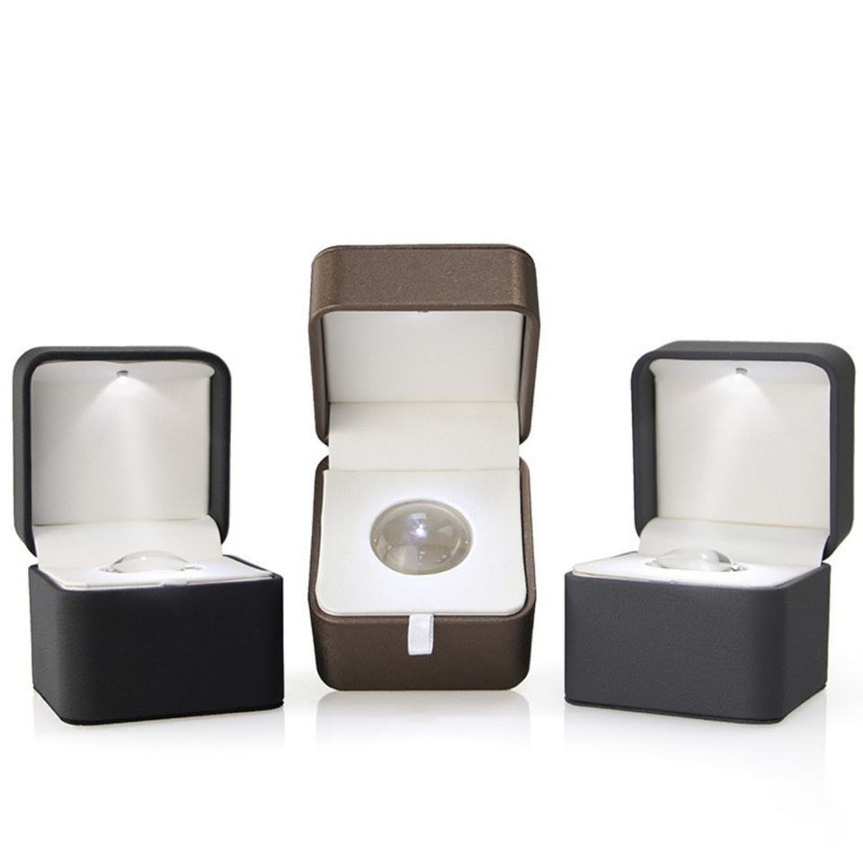 Drawer Box Base an Lid Packaging New Creative PU Leather LED Light Valentine's Day Proposal Ring Box with Loupe Factory