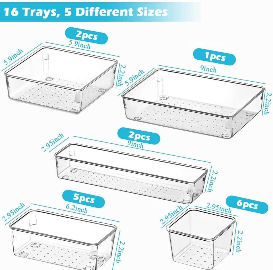 Drawer Organizer Set Dresser Desk Dividers Multipurpose Plastic Storage Bins for Bathroom Vanity Cosmetic Makeup Jewelries