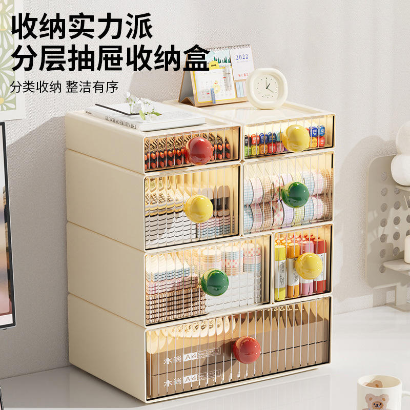 Drawer Style Storage Box With Handles Stackable Office Organizer For Cosmetics Toys Figurines Desktop Use Solid Color Rectangle