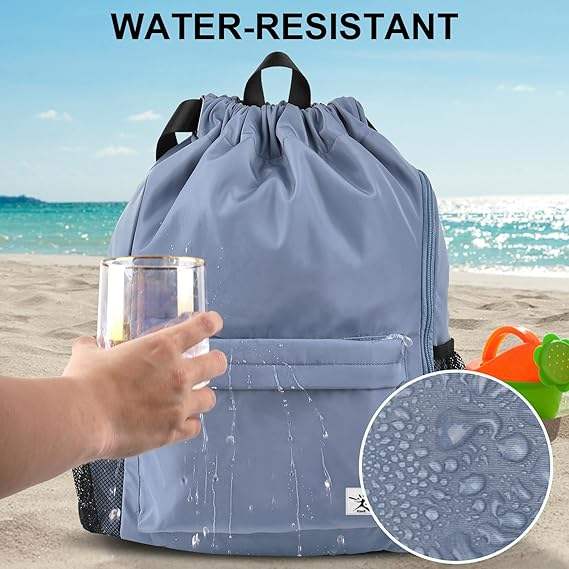 Drawstring Backpack Sports Gym Bag with Shoes Compartment, Water-Resistant String Backpack Cinch for Women Men (Large,Black)
