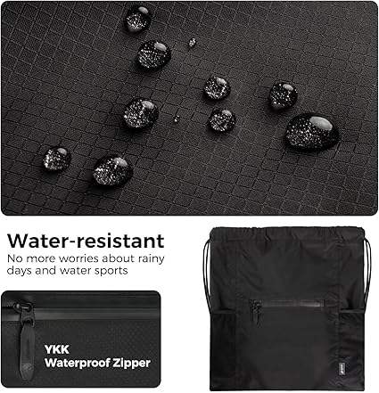 Drawstring Bag Backpack, Water-Resistant Sports Gym Sack Bag, Lightweight Training String Bag with Waterproof Zipper Pocket